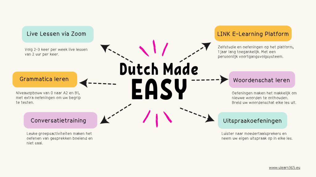 Onze unieke “Blended Learning” methode is speciaal ontworpen voor Thaisprekenden. Wij combineren live online lessen via Zoom met een uitgebreid zelfstudieprogramma op het LINK-platform. Dit systeem is ontwikkeld door NT2-experts van de Vrije Universiteit Amsterdam en omvat grammatica, uitspraak, KNM en diverse oefeningen.